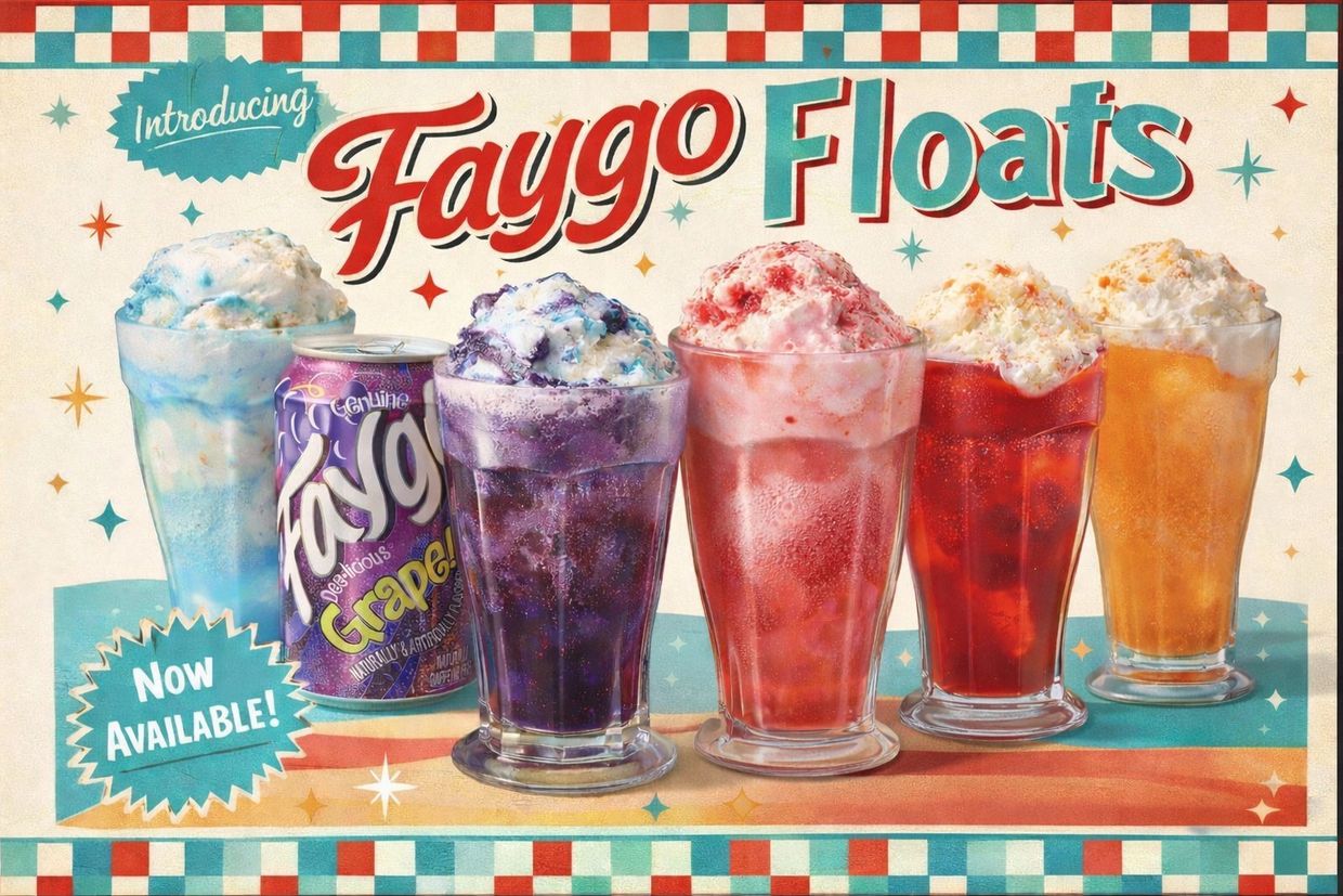 Straight out of the Midwest playbook: Faygo Floats. Pick your favorite Faygo flavor and we’ll pour it over four scoops of vanilla ice cream for a bubbly, creamy classic that takes you back to simpler summers. Cold, refreshing, and proudly Midwest.